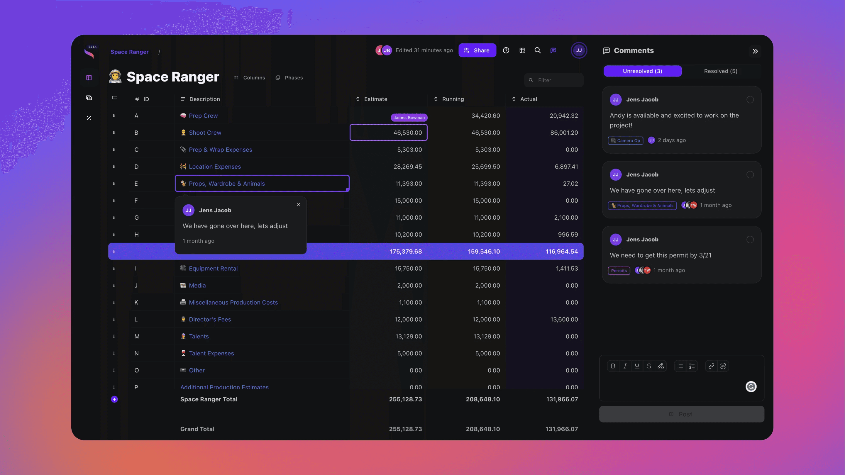 Join thousands of production teams using Saturation to budget, track expenses, and manage payments.