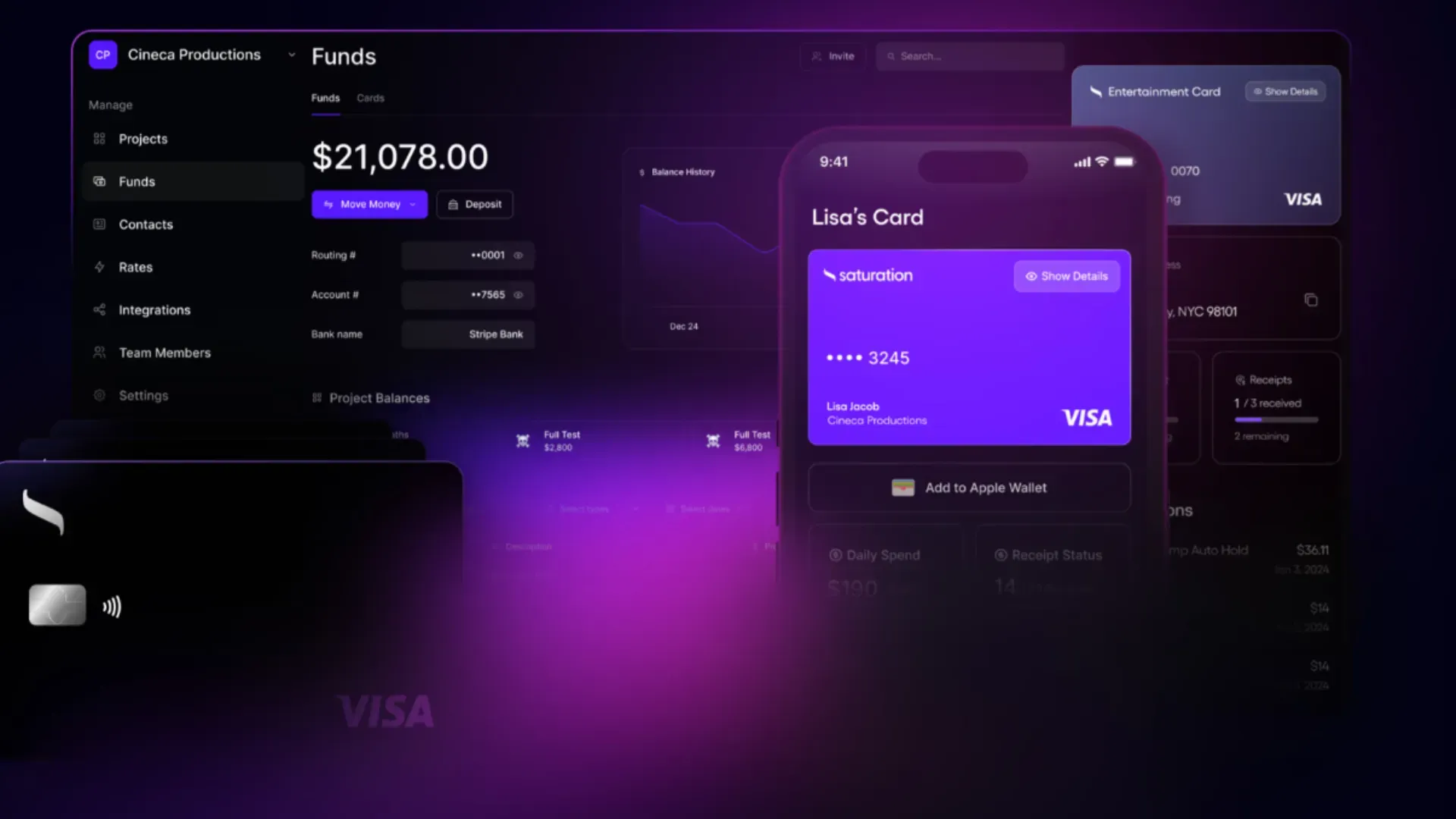 Issue virtual/physical production cards tied to the budget Don’t let everyone use their personal cards and submit receipts. With a tool like Saturation Pay (or equivalent), you can preload budgets, set spending limits, and auto-assign to cost lines.