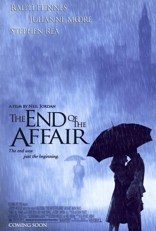 "The End of the Affair" (1999) is a poignant romantic drama set in post-World War II London, adapted from Graham Greene's novel. The story revolves around the intense and tumultuous love affair between Maurice Bendrix, a successful writer, and Sarah Miles, the wife of a civil servant. Their passionate relationship unfolds amidst the backdrop of war-torn England, exploring themes of love, jealousy, and faith.