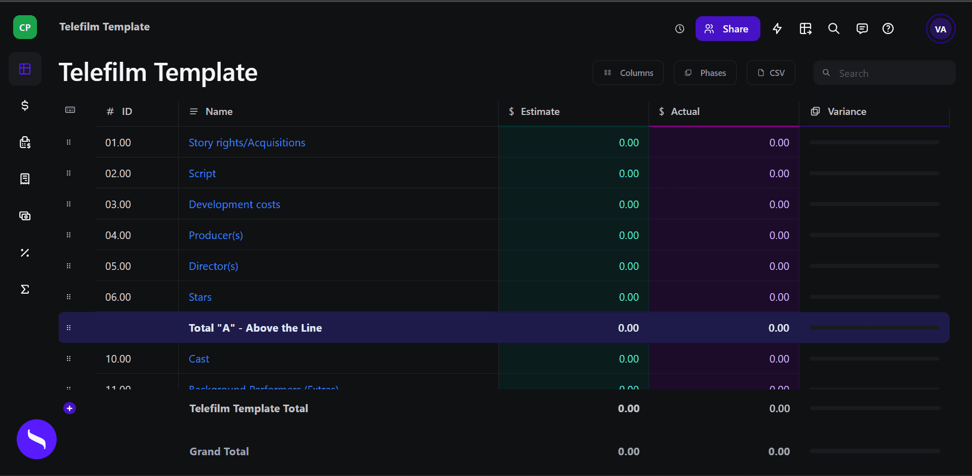 Transparency in budgeting also extends to marketing and crowdfunding efforts, enabling filmmakers to demonstrate how funds will be utilized throughout the production process. By providing a clear financial roadmap, producers can build trust with potential investors and supporters, increasing their chances of securing the necessary funding for their projects. A well-structured budget template in Saturation helps maintain this transparency throughout the production lifecycle: