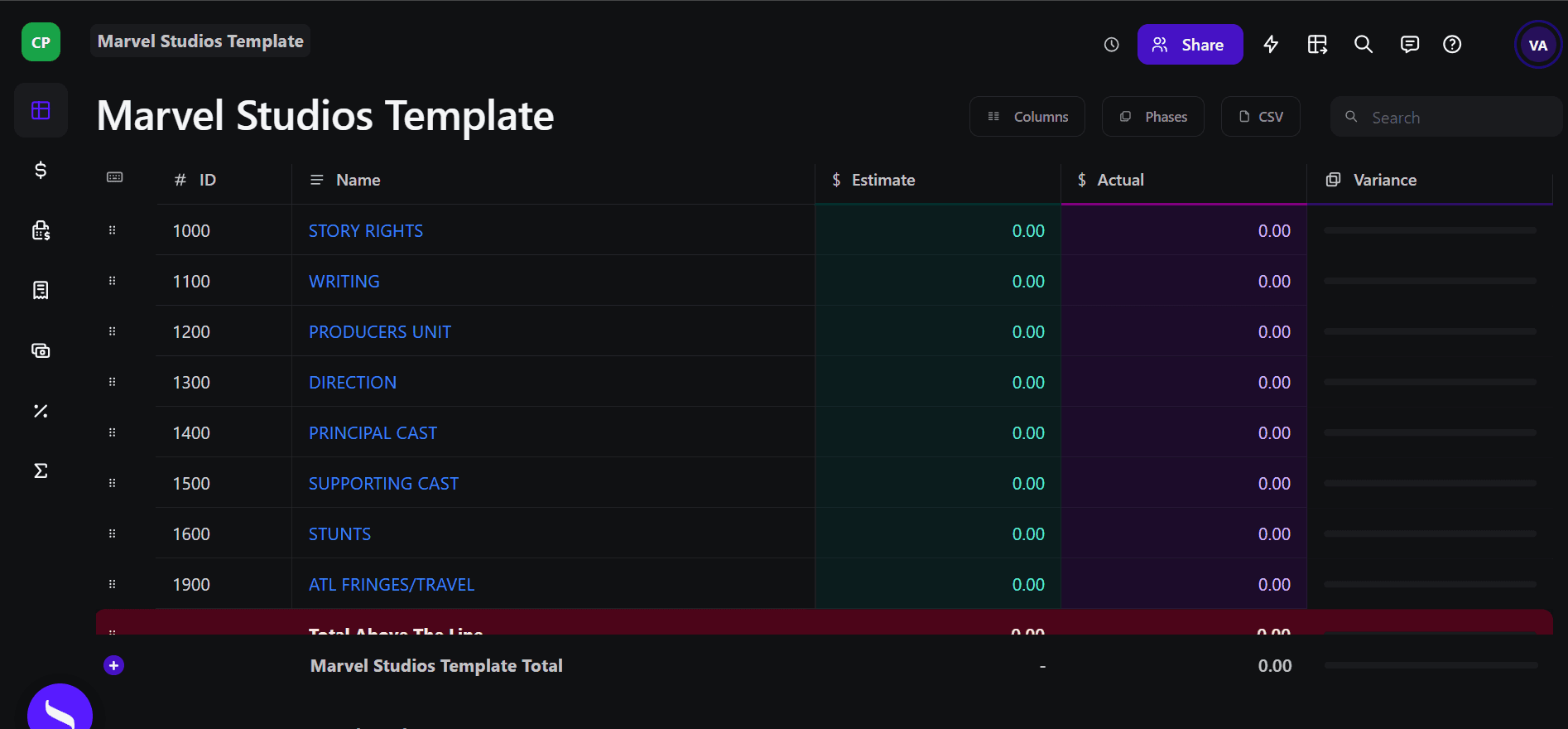 The same above-the-line, below-the-line, and post-production framework that structures a $250 million Marvel production applies to a $250,000 indie superhero film or a $2.5 million commercial. Understanding how studio-scale productions organize their budgets gives any filmmaker a stronger framework for managing their own projects, regardless of scale. Use Saturation to build and track your production budget using the same professional categories used at the studio level.