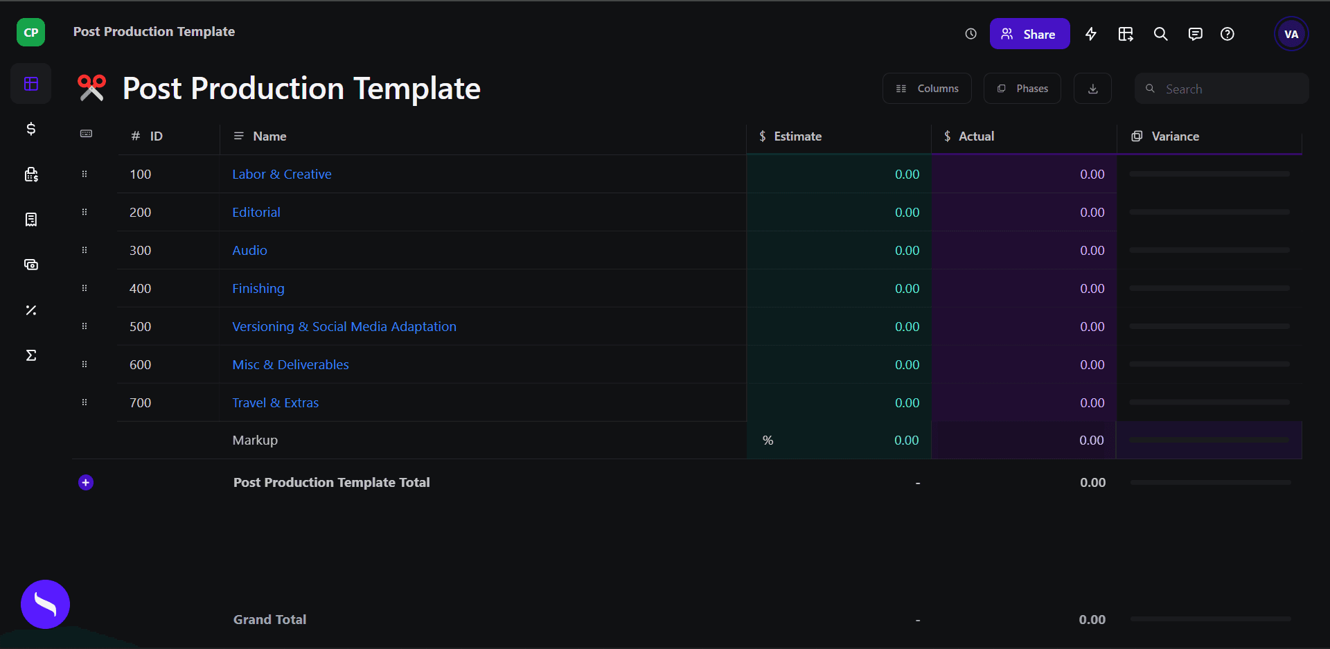 The Post Production Budget Template caters specifically to this crucial phase of media creation. It breaks down all post-production costs, from editing and color correction to sound design, visual effects, and even distribution. Every detail, from software licenses to skilled technician fees, is accounted for, providing a comprehensive financial blueprint.