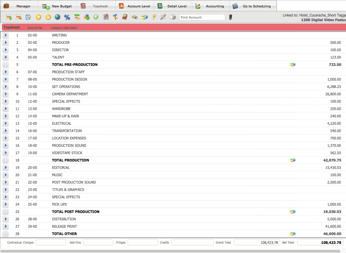 Gorilla also supports 14 languages and multiple currencies, making it a practical choice for international co-productions and non-English-language projects. The integration with Gorilla Scheduling allows producers to pull cast, crew, locations, and elements directly from a linked schedule into the budget.